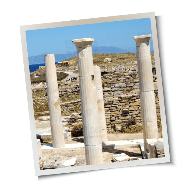 Delos is a Greek island/archaeological site in the Aegean Sea’s Cyclades archipelago next to Mykonos. Here, was the birthplace of Apollon & Artemis. According to mythology, this Island was created by Zeus in order to protect his children by Goddes Hera. It was one of the most sacred places of ancient Greece as well as one of the most important trade centres. There is evidence of habitation on the island that dates back to 3000 B.C.